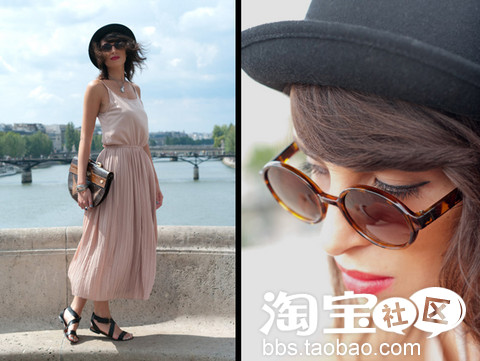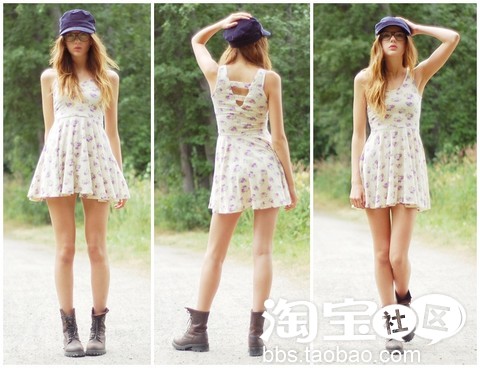 甜美的碎花裙,配上感觉调调有些不符的帽子,还是很完美。