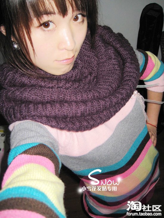 今冬不败的紫色大围巾搭条纹毛衣,更加了一分时尚!