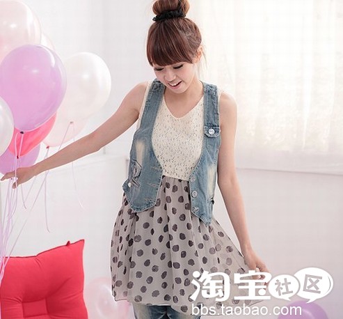 搭一件短外套 小坎肩都很好看的哦 而且超有气质 可以去我店铺看看 价格好商量- -同种不料的白色小坎肩,