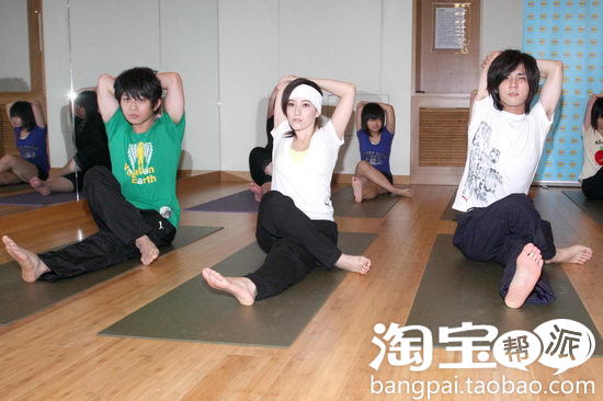 有人会说,这样是不是会很雷,一年一个七夕,竟然是练瑜伽。不是很雷,对于以前的我感觉是非常的雷,不可思议的雷。不过就在去年,我想尝试一下。因为每年七夕我们不是去看电影就是去逛街买很多的DD,要么就是找几个朋友一起大吃一顿,感觉没什么意思。经一个朋友的提示,突然想到了瑜伽,对呀,我自己都是在卖瑜珈服的,为什么不去带着他去学习一下瑜伽呢?也让他学习一下,看下他的囧像哦~于是,去年七夕节那天,我们在店里拿了衣服,我带着他去一个俱乐部请了教练教我们瑜伽,以下是图: