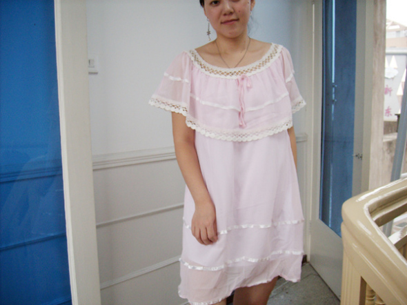 3.公主披肩粉粉连衣裙+优雅长坠耳环项链配饰 我的楼梯居家照