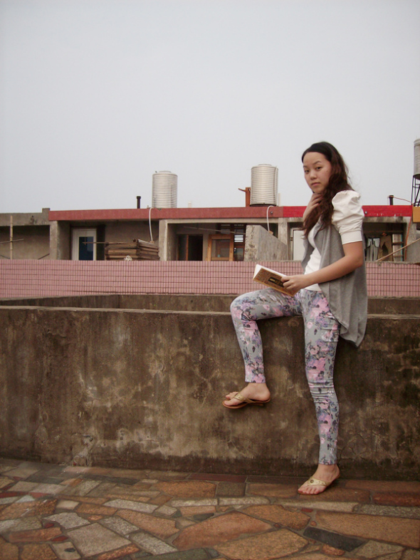 穿着这么有气质的衣衣,在天台上看书,是不是感觉自己也成了一道风景。