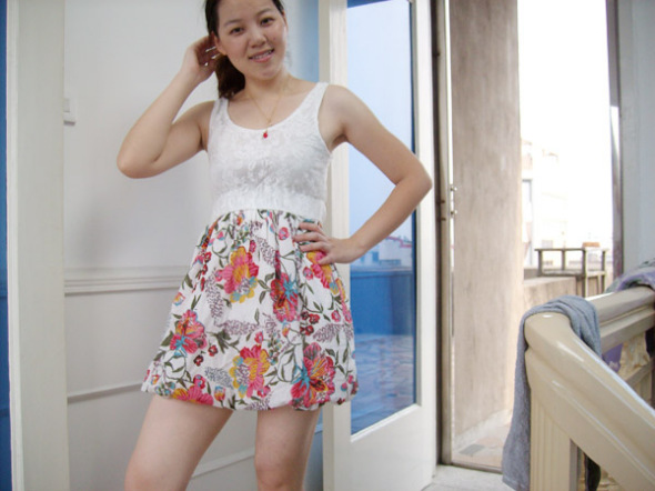 感觉很美。。美滋滋的。可爱的花苞裙,让我看起来也娇小。装个小巧的女人。