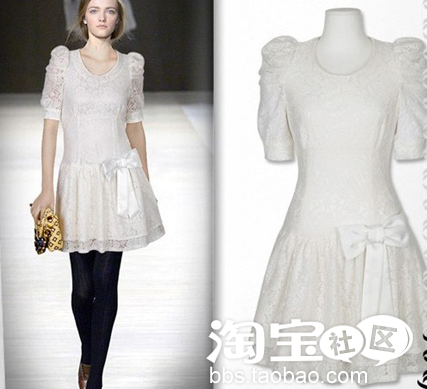 NO.3 淑女迷人 黑色网纱短袖棉质连身裙