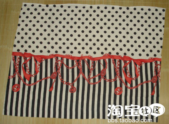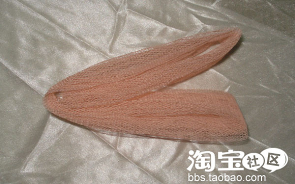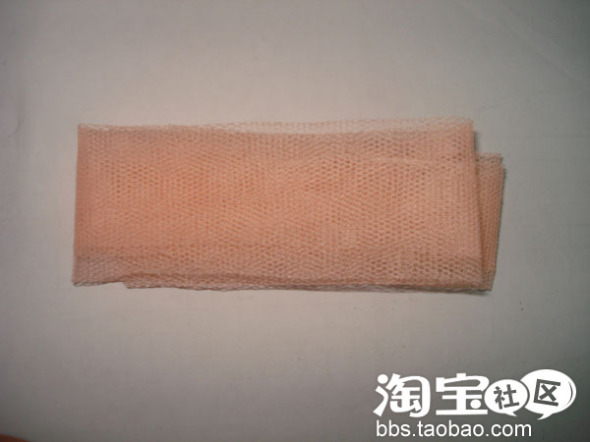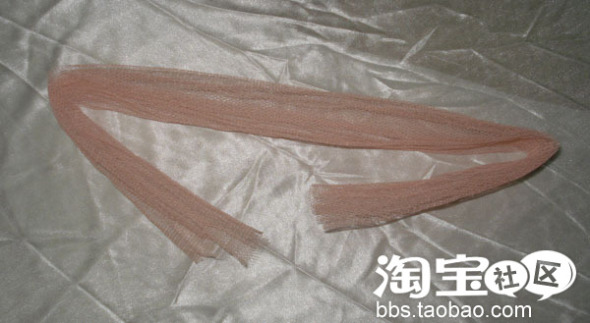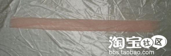 下面介绍是步骤,首先,裁出一条大概的长方形的粉红色网布,大约是50cm X 20cm,