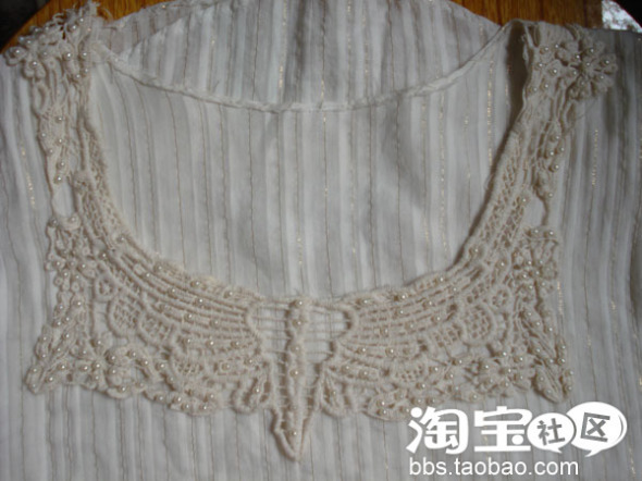 布料是很好的料子,穿起来很舒服 ,加一个绣花和珠珠的领口作搭配,用蕾丝花边作袖子的修饰,整体感觉很大方,很优雅 。