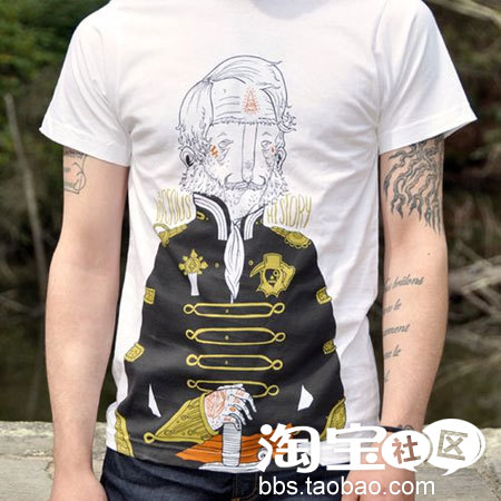 这个T恤不错,是典型的国外潮人一族,胆子也太大了,什么也敢想,什么也敢做,这样的T恤回头率肯定不少,楼主辛苦了!!!个性