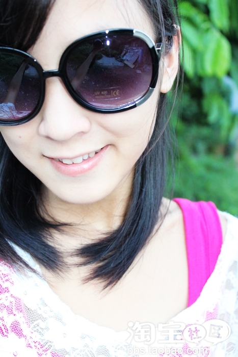 妹红色小背心+蕾丝外衫+墨镜=打造清新甜美公主风