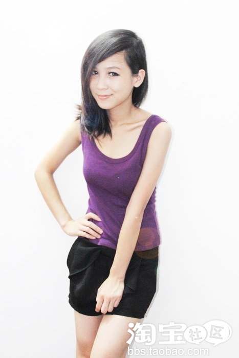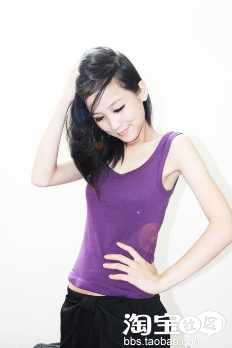 紫色背心+黑色蝴蝶结短裤+简单的妆容=打造优雅欧美公主风.