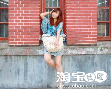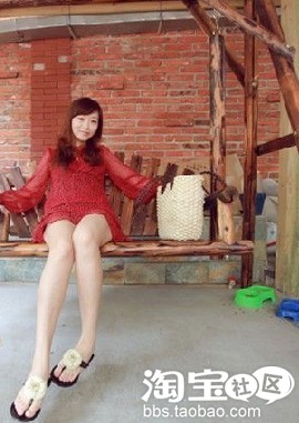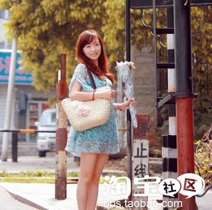 红色雪纺裙搭配的山茶花夹脚拖鞋和草编的包,不知道是不是今年流行的混搭风,^_^自己这样搭配只是为了不那么严肃,毕竟是外出旅游散心的。