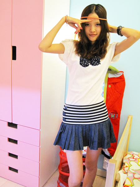 5.甜美蝴蝶结T+学院派短裙