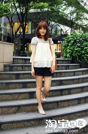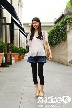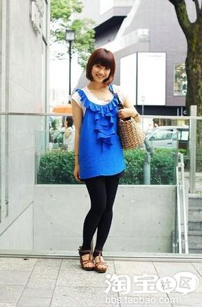 荷叶边加上leggings。平底鞋,同样也是带有明显少女气质的鞋子。