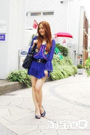 小短靴,甜美可爱。one picec的无腰部短裙,同样甜美可人。