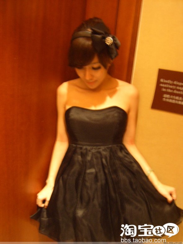 高貴優雅黑色歐根莎裹胸裙