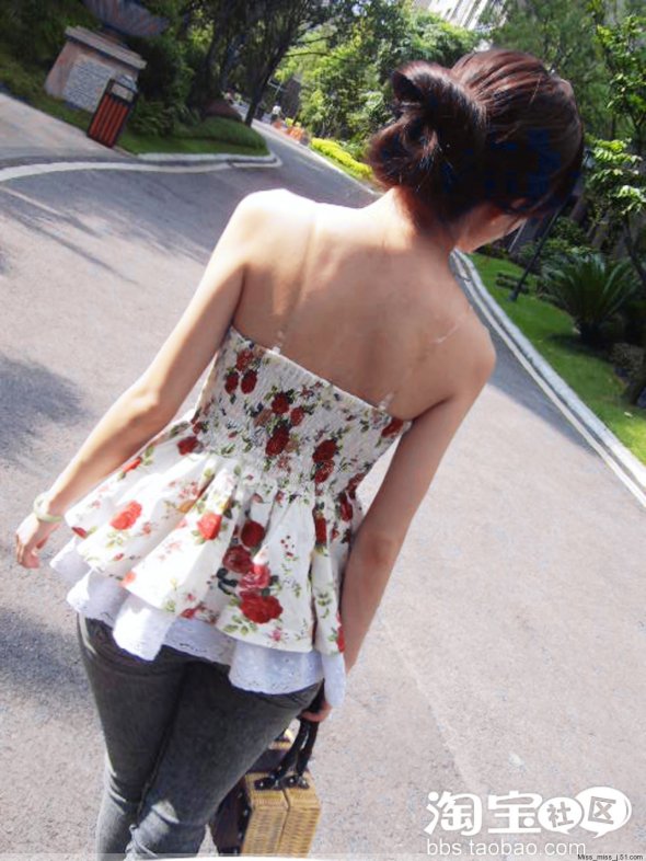 甜美復古碎花蓬蓬裹胸上衣