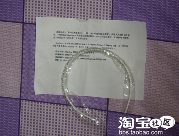 在服饰话吧第二十六期活动中,得到了固定抢楼奖:一个头箍