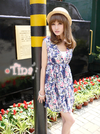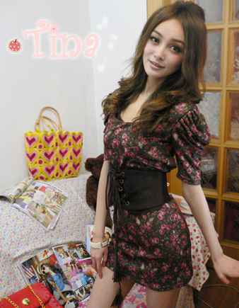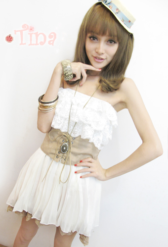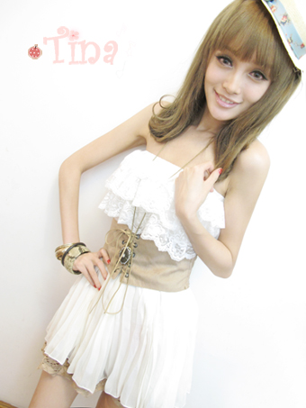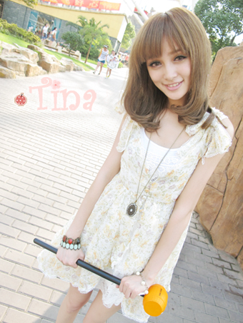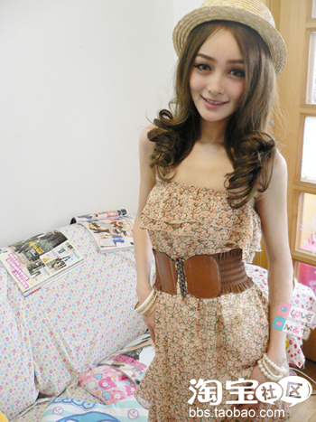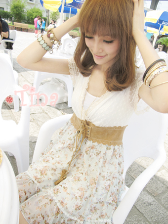 蕾丝与雪纺的结合加上腰封高腰的设计的点缀~~很适合夏天甜美的穿着~~