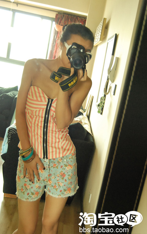 这套有点花俏了,没有配皮带~~找不到合适的~~~我也是第一次这么搭配~~~~~~上衣才60米~~质量很好,这个夏天抹胸大爱啊~~~~