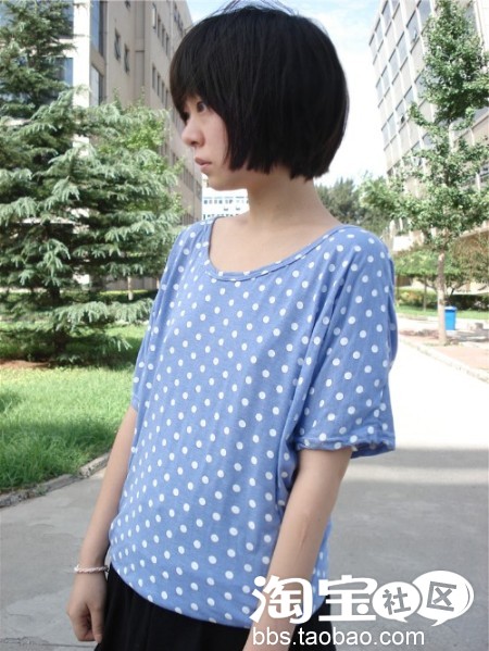 甜美风2 水玉冰欺凌蓝紫色宽松T
