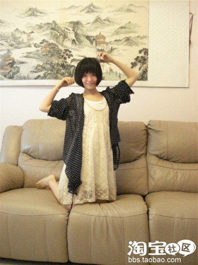 蕾丝的罩衫也可以搭配罩衫,我就搭了个雪纺水玉的罩衫哦O(∩_∩)O~