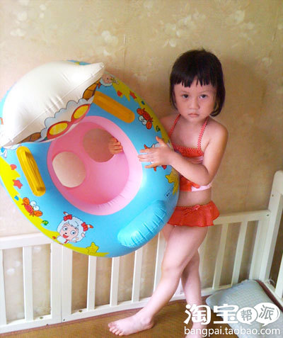 在游泳池里,小美女桃花一直躺在她的喜羊羊小船上漂在水面上,我离得稍远就叫:妈妈,我一个人了呀