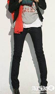 成熟以后的体形往往变圆。要想显得腿部修长,应选择直筒或窄脚型的裤子。如果裤脚太大呈喇叭状的话,容易显得俗气。如身材纤瘦高挑,直身或喇叭型剪裁牛仔裤是必然选择。身材较矮小的女士,则宜选择较贴身并比脚踝长一些的款式,以求“拉长”全身比例。