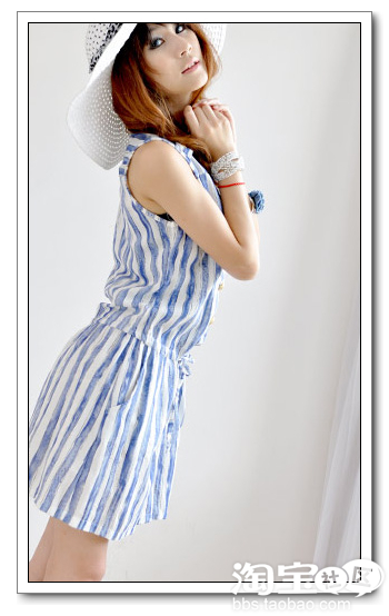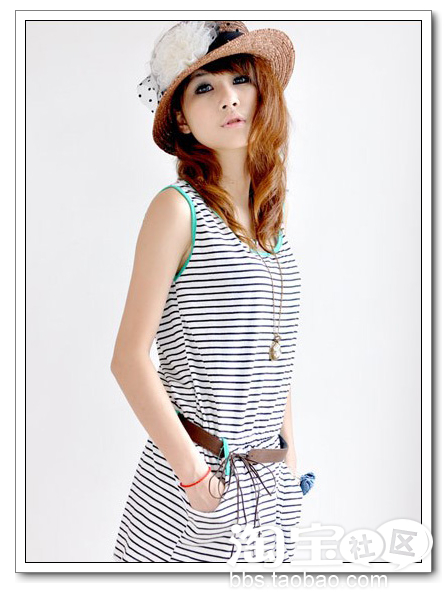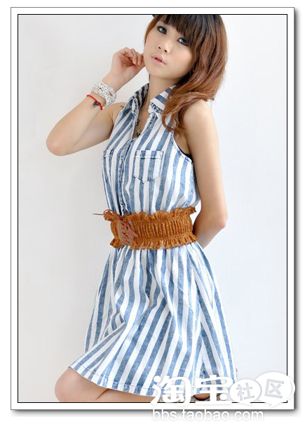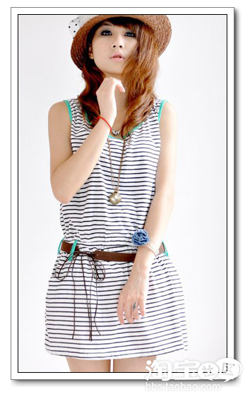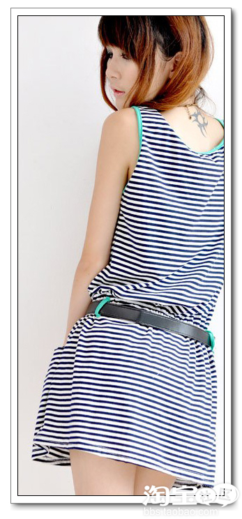 来一款日系青春的横条纹裙裙