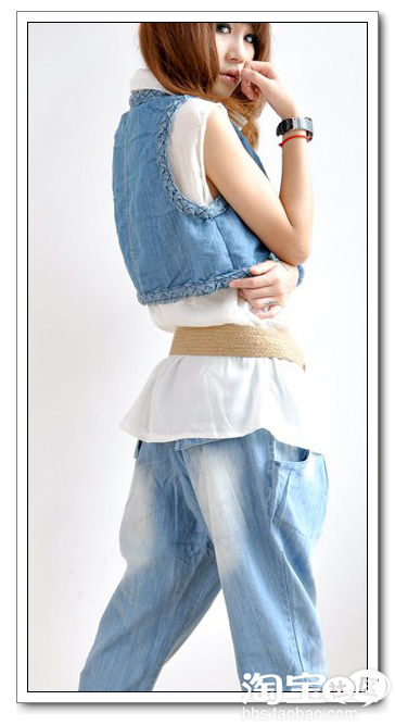 搭配同系列牛仔哈伦裤