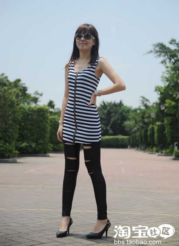 怎么样搭配最能显得腿长,最简单的当然就是上面短T或者有像这种高腰效果的。