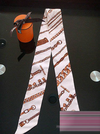 白色的Twilly丝巾,图案是HERMES经典手链,一看就喜欢上了,USD125