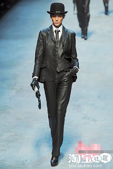 硬朗的男性阳刚外形与女性的柔和曲线完美融合,配以夸张的大尺寸剪裁