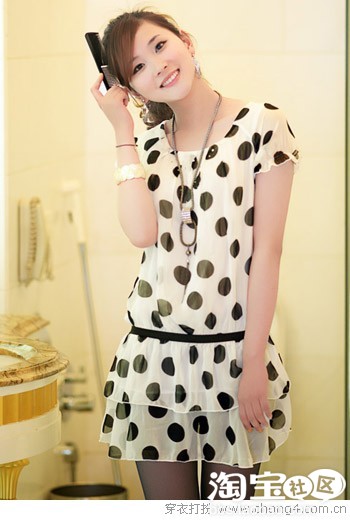02 圆点设计,虽然相比于碎花少了那么一点点浪漫,但是也够有气质的。加上层叠裙摆设计,优雅独特。