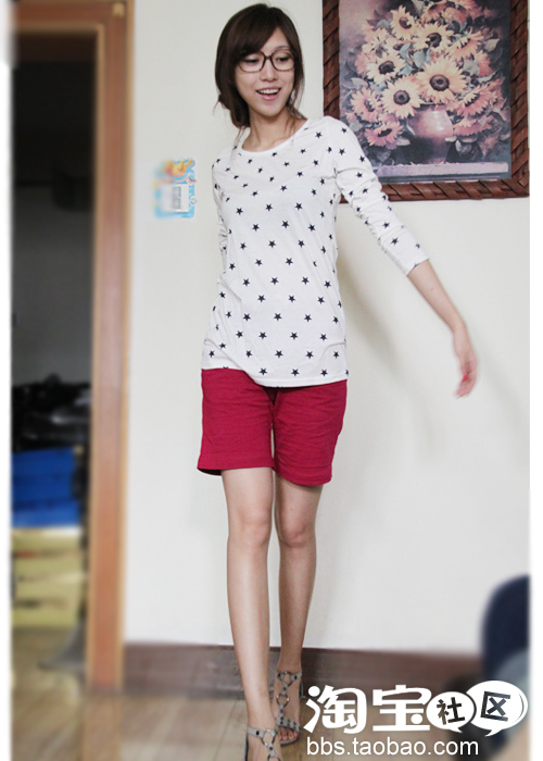 其实短裤是比较长款的 所以大黄觉得 如果短裤比较长 上面搭配一个长袖的T感觉
