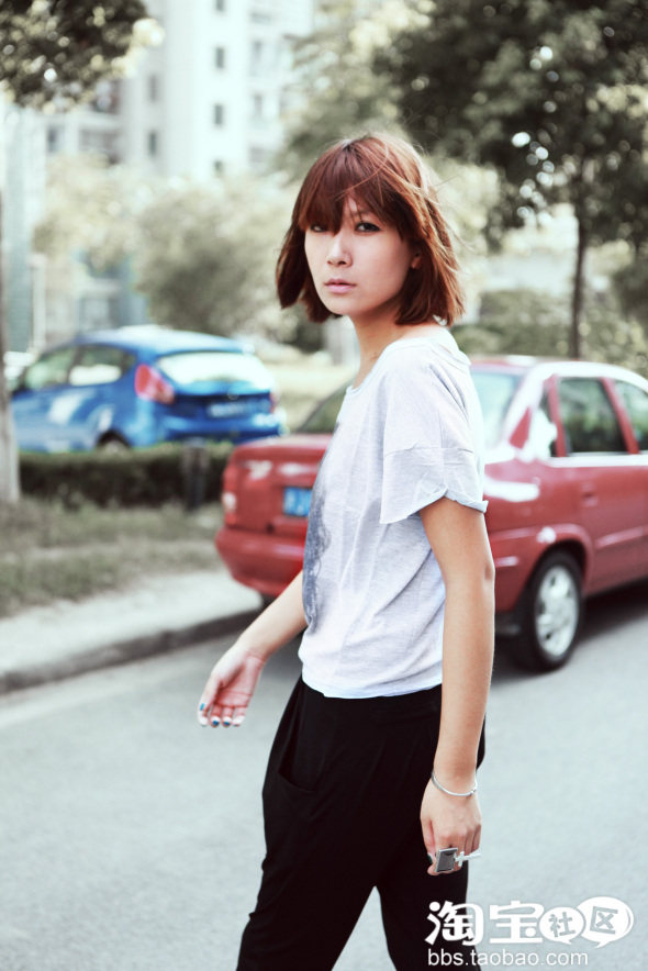 还有就是模特mm的黑色哈伦裤搭配,也很有型!