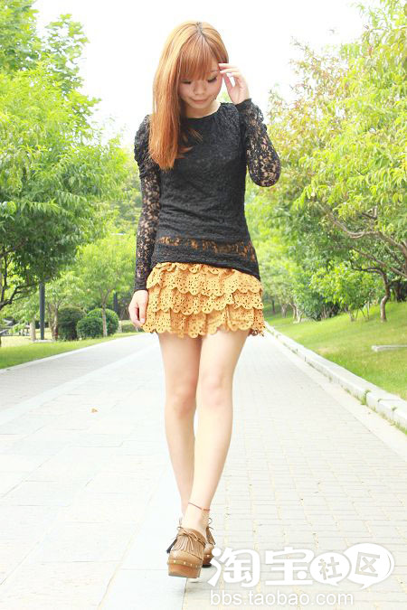 如果觉得这样穿太露的MM,那么可以在外面穿个薄薄的小罩衫什么的,也是很美丽的