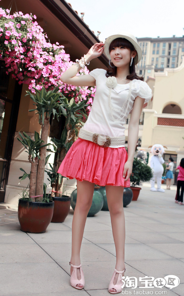 下面穿上短裙 一下子给人眼前一亮的感觉