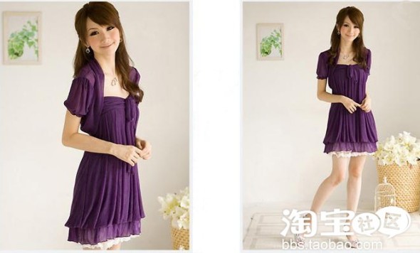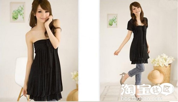 这款可以算是百搭型的衣服啦!连衣裙加上一个小披肩你想怎么搭配也行!不同的穿法可以显示出不同的美哦!性感,女人味,高贵样样具备哦!