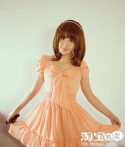 淡橘色,是今夏很流行的,雪纺的裙子很梦幻