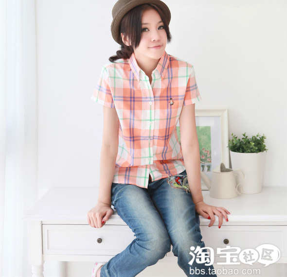 一件彩色格纹衬衫,无论是绿色还是粉色,都如此粉嫩