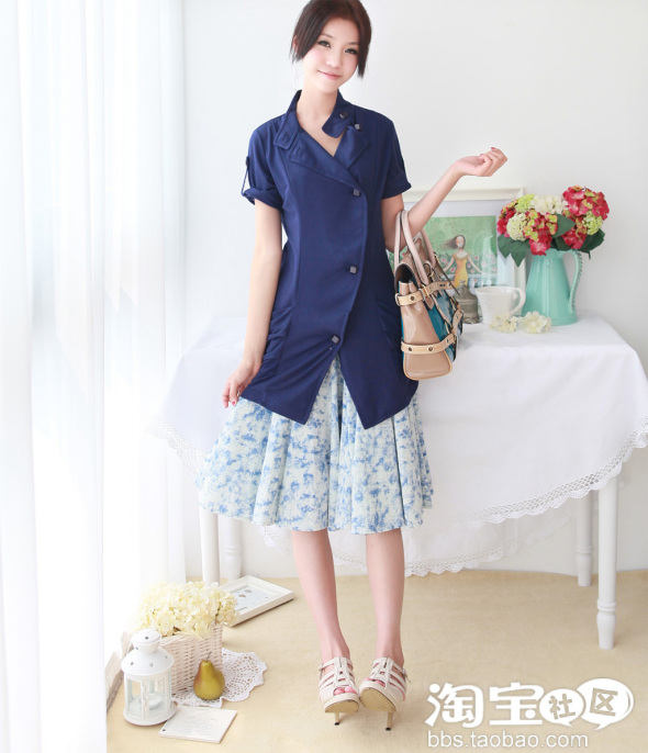 这一款长衫的不规则纽扣设计,很调皮,很个性,颜色也很深邃,却很有韩范儿哦