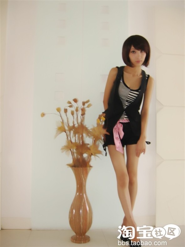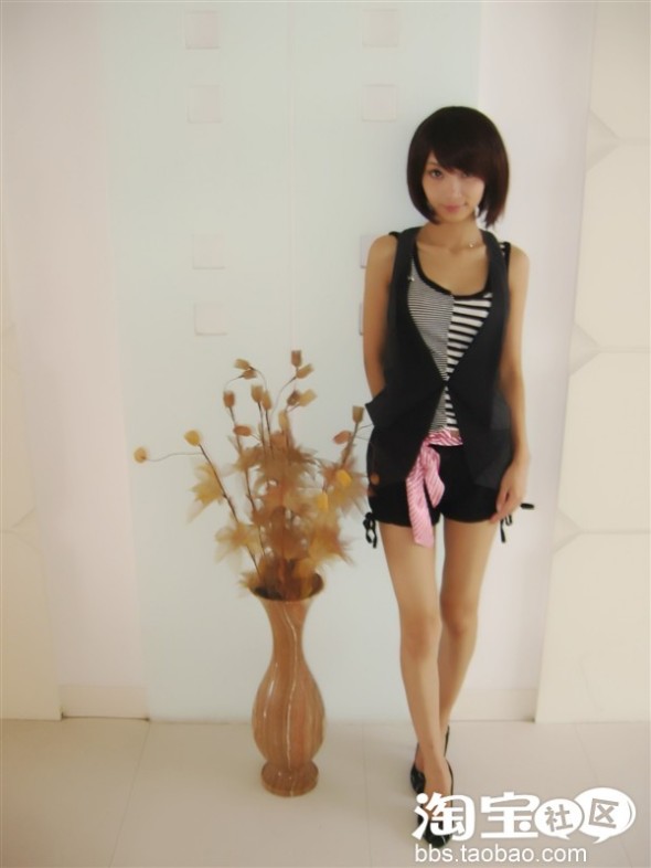 3.条纹砍袖+时尚小马夹+小短裤+小白金项链(有点看不清)我的门厅居家照