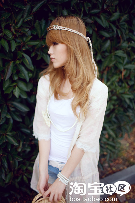 再次配上利落的bobo头和宽宽黑色发箍,还有黄色的流苏平底鞋~
