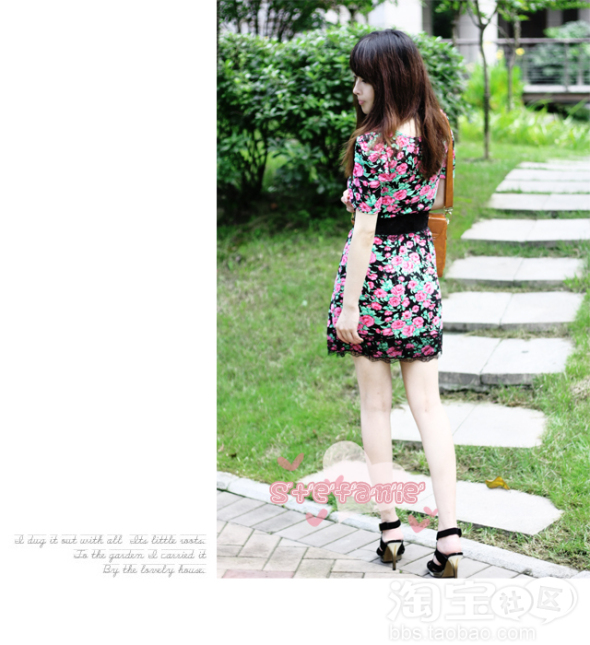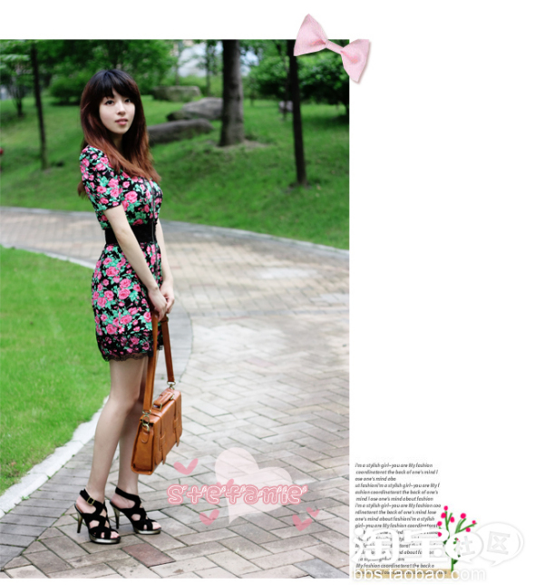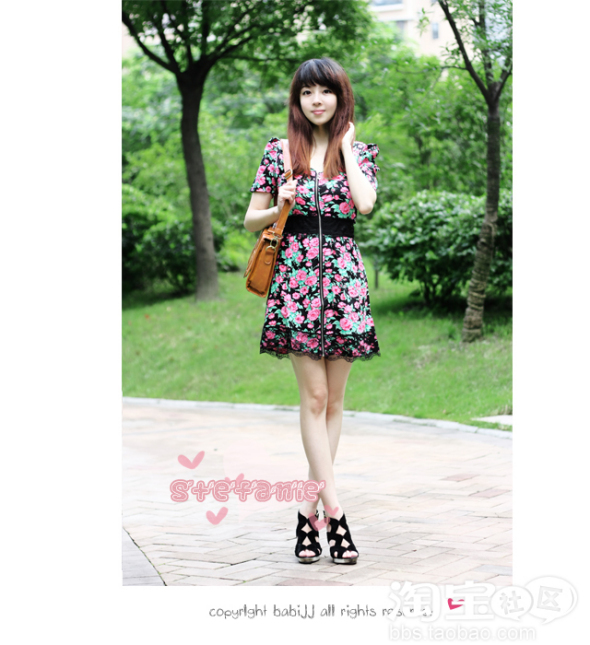 1.花色连衣裙(蕾丝腰封)+罗马鞋