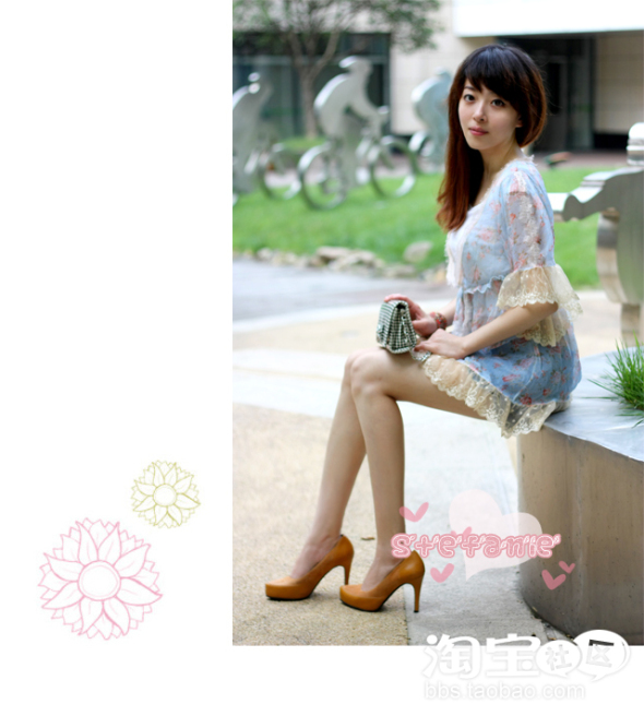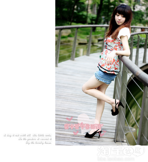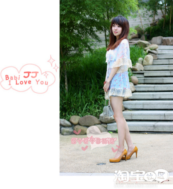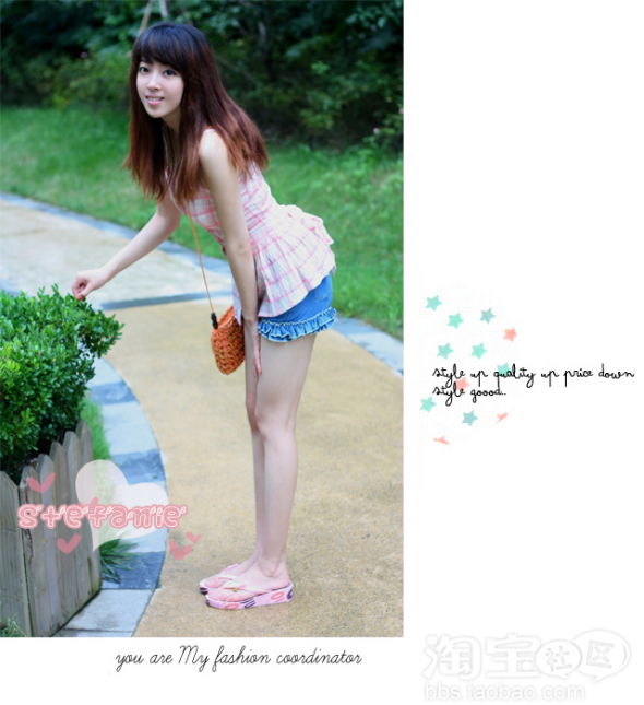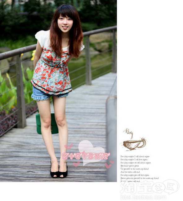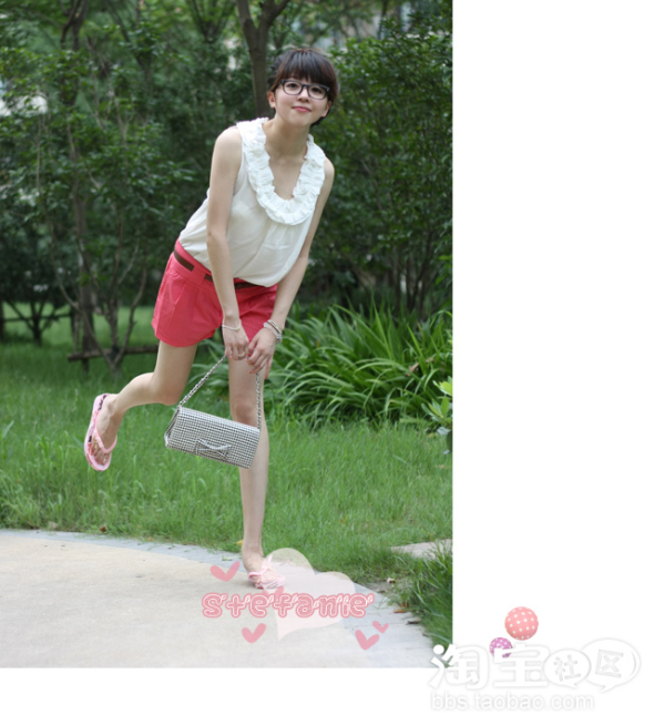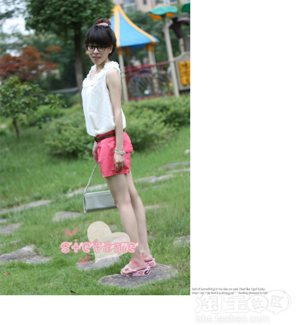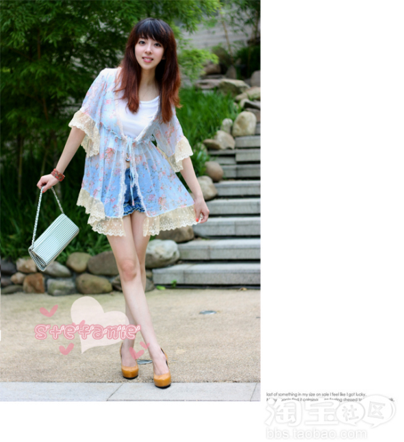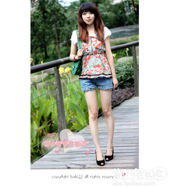 搭配花边的牛仔短裤 相当甜美可爱 喜不喜欢呢~~~
