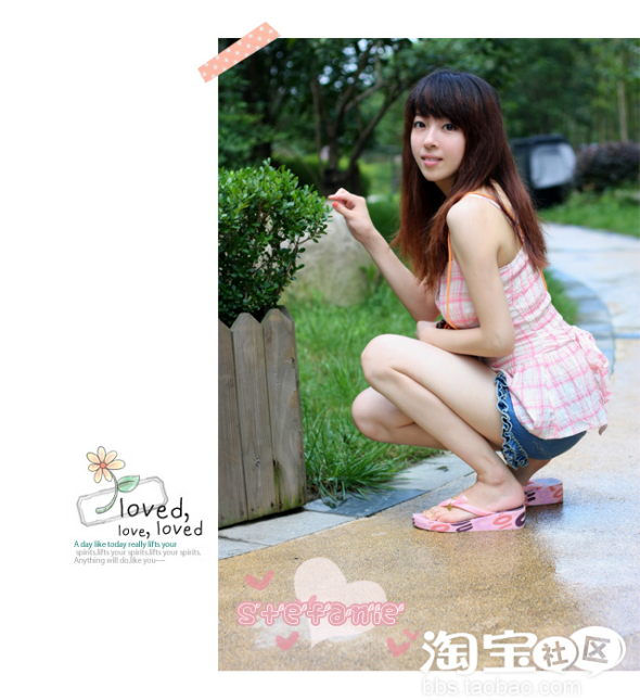 3.可爱格子裹胸衣衣+花边短裤+人字拖