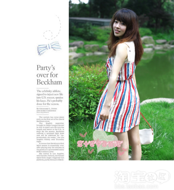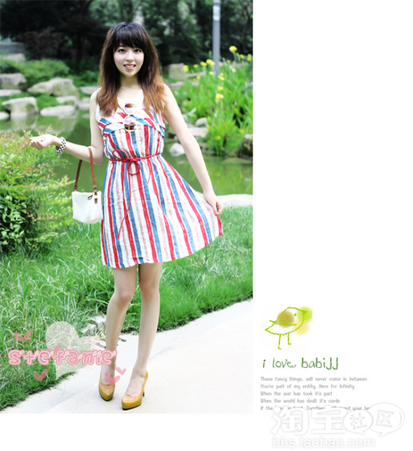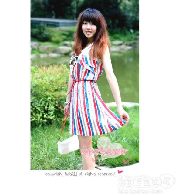 4.韩国风竖条连衣裙+奶白色小包+高跟鞋