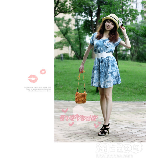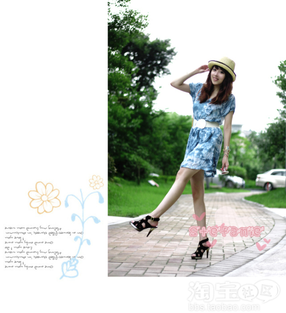9.显瘦水墨印染连衣裙+白色皮质腰封+罗马高跟鞋