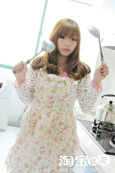 围裙也是小花的,田园风的,不得不说 ,我穿上这围裙怎么看怎么像孕妇啊~