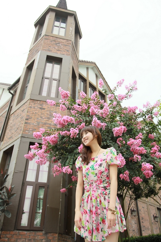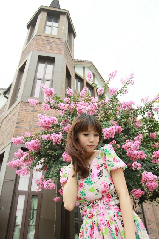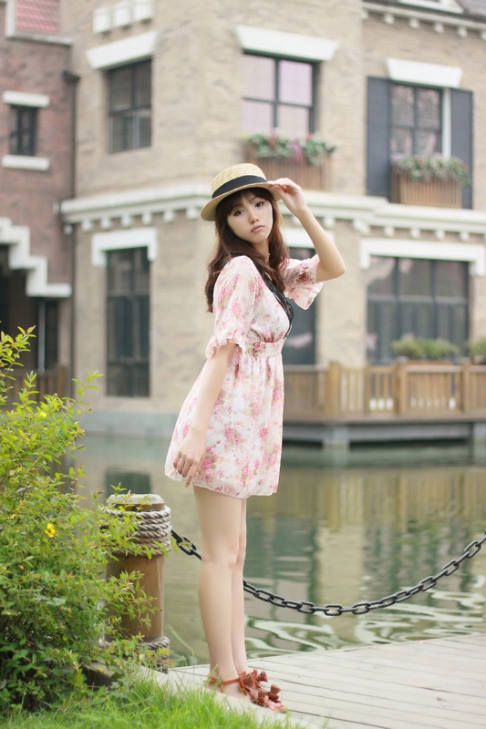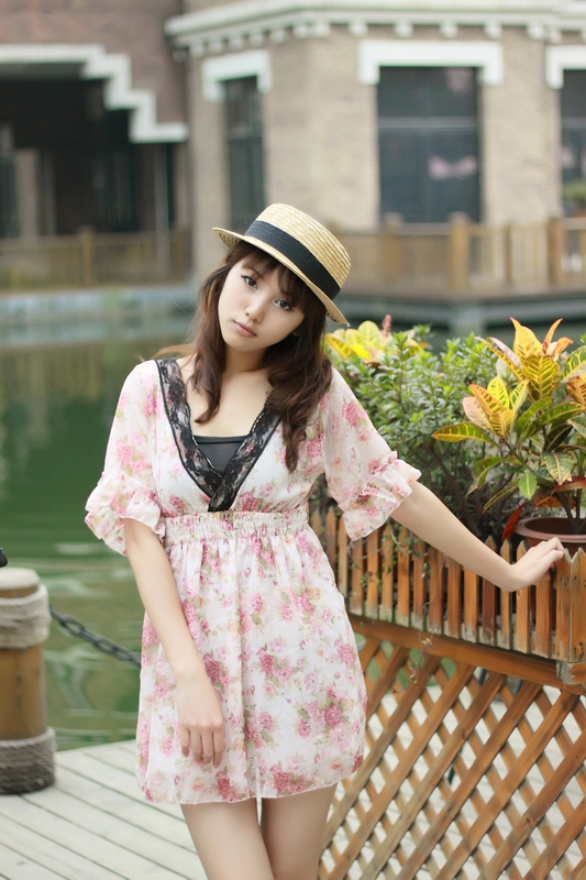2、日式感的花朵裙,选择V领的好处就是能够衬托出优美的颈部线条,在女孩中带入一点女人味,你的他一定怦然心动了吧!