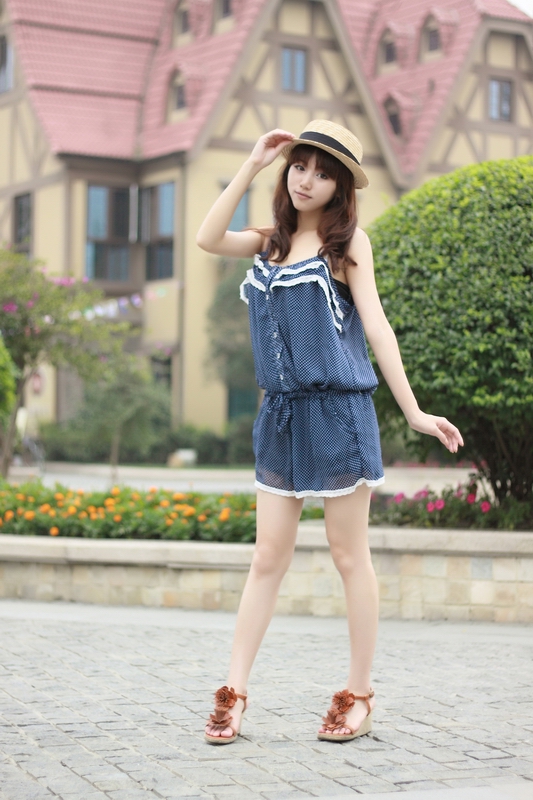 1、单排扣宫廷式雪纺连体裤,轻薄的材质,淡雅的颜色,加上腰部系带收腰设计,让身材更显修长轻盈。让你的他倍加怜惜哦